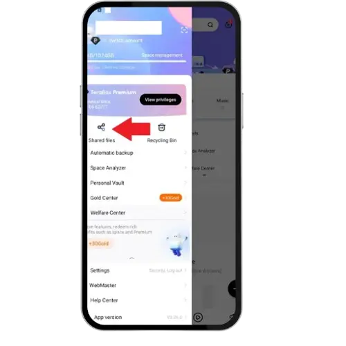 After successfully login tap on your profile picture, open the navigation menu, and search for the option shared files.